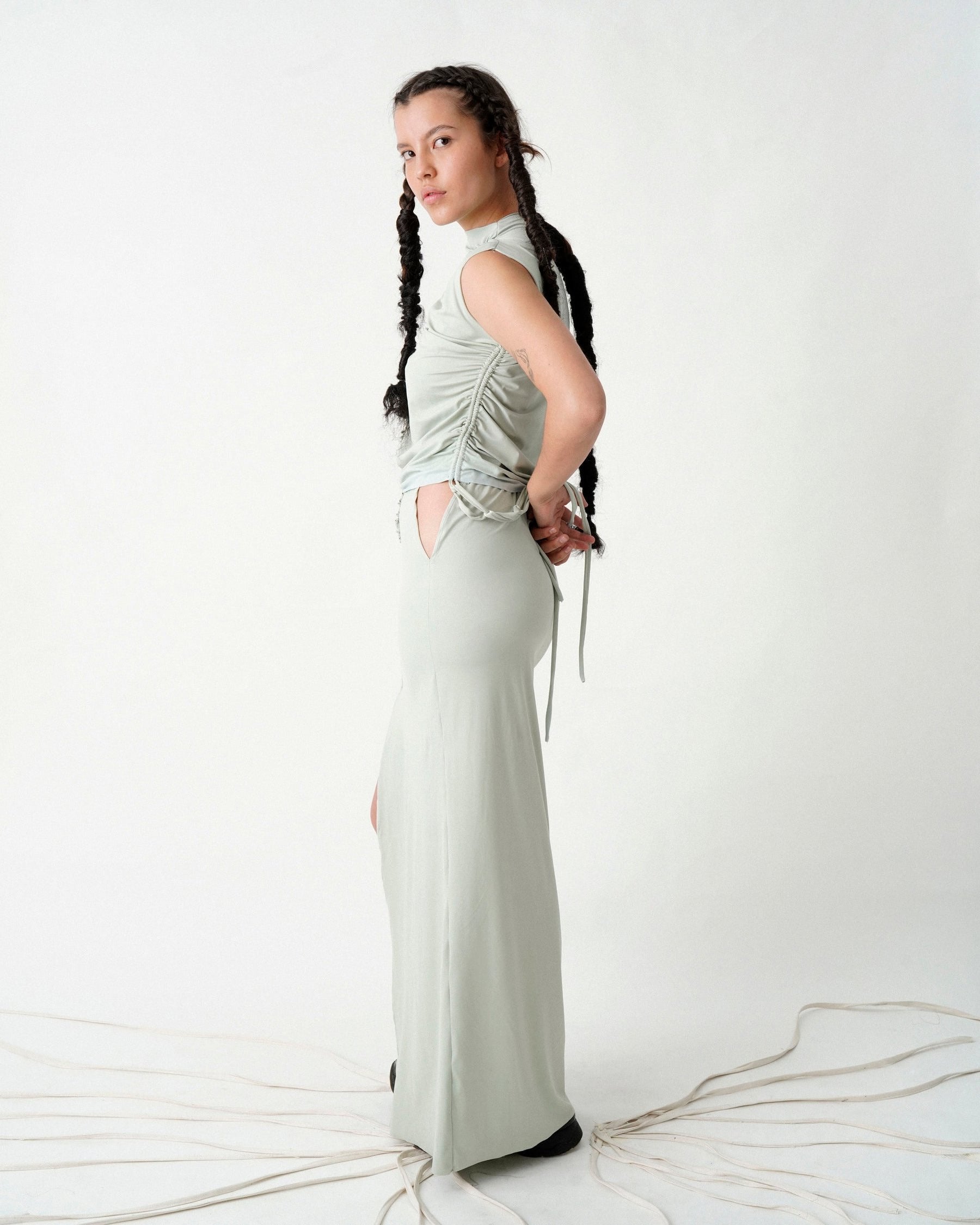 pantalón tiras largas, nudos y secretos