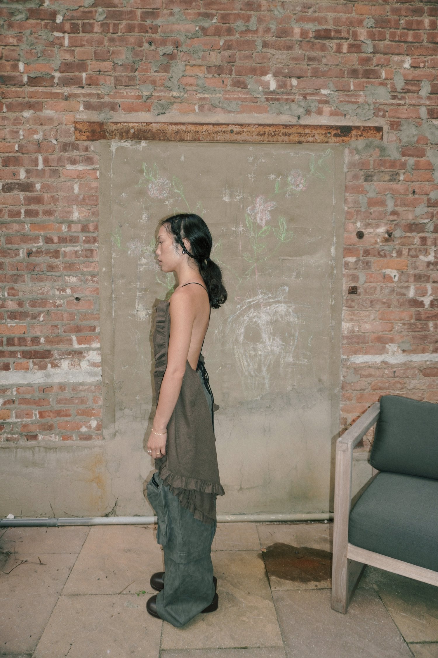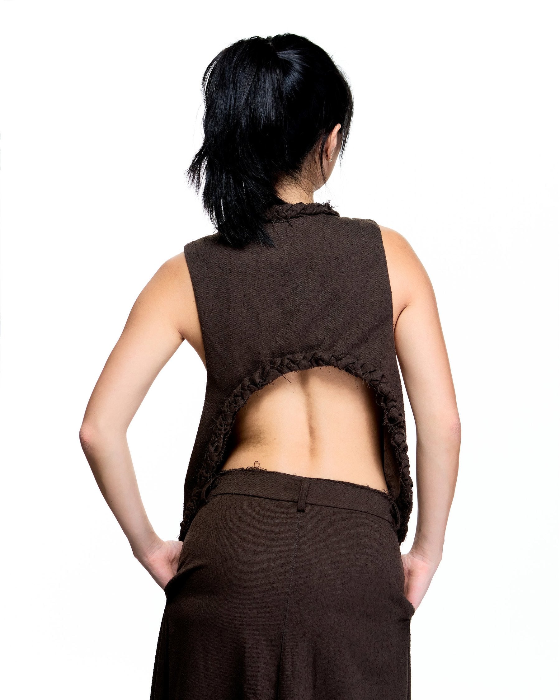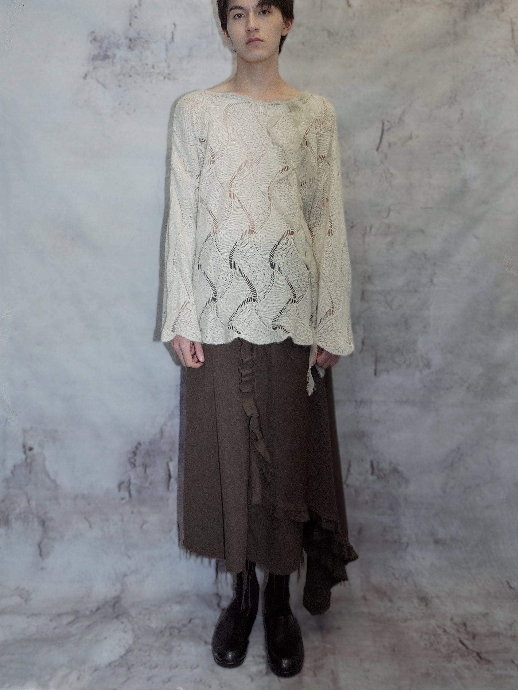 SaleASYMMETRICAL BOUCLE DRAPY RUFFLE SKIRT_CHOCOLATE