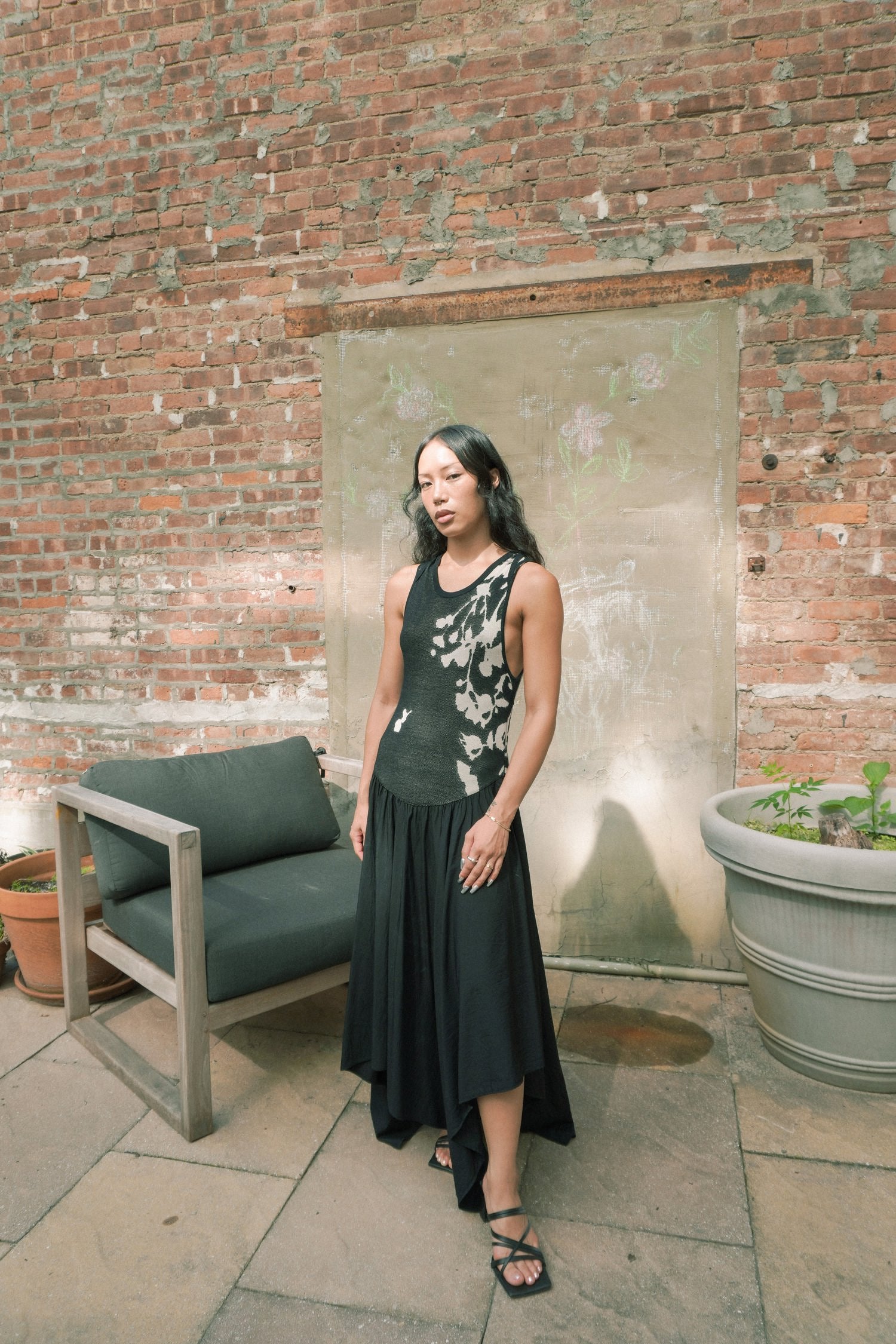 SILK BLENDED KNIT TANK ASYMMETRICAL DRAPY DRESS