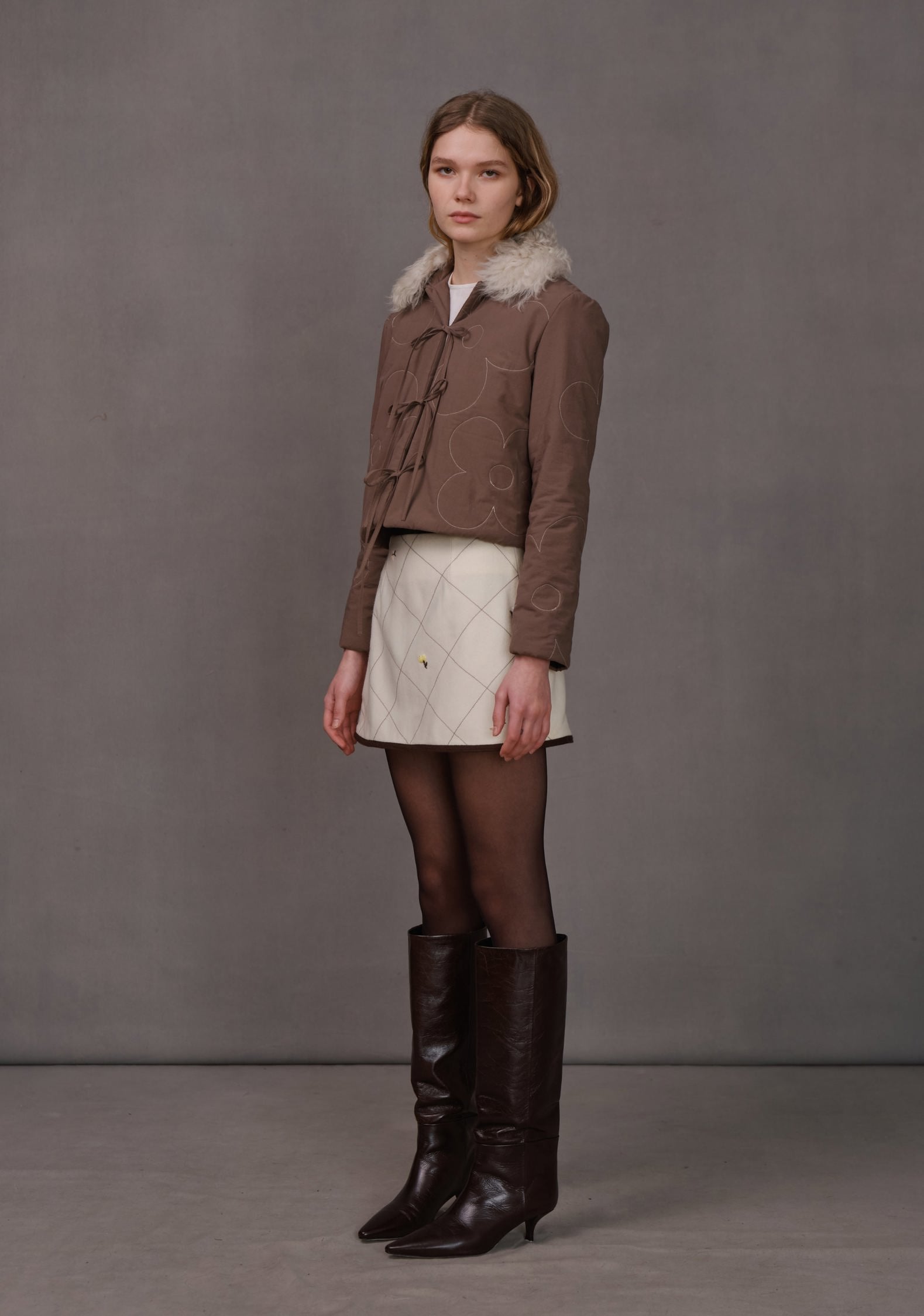 Satin Binded Lace Up Faux Fur Caterpillar Boots Straw Yellow