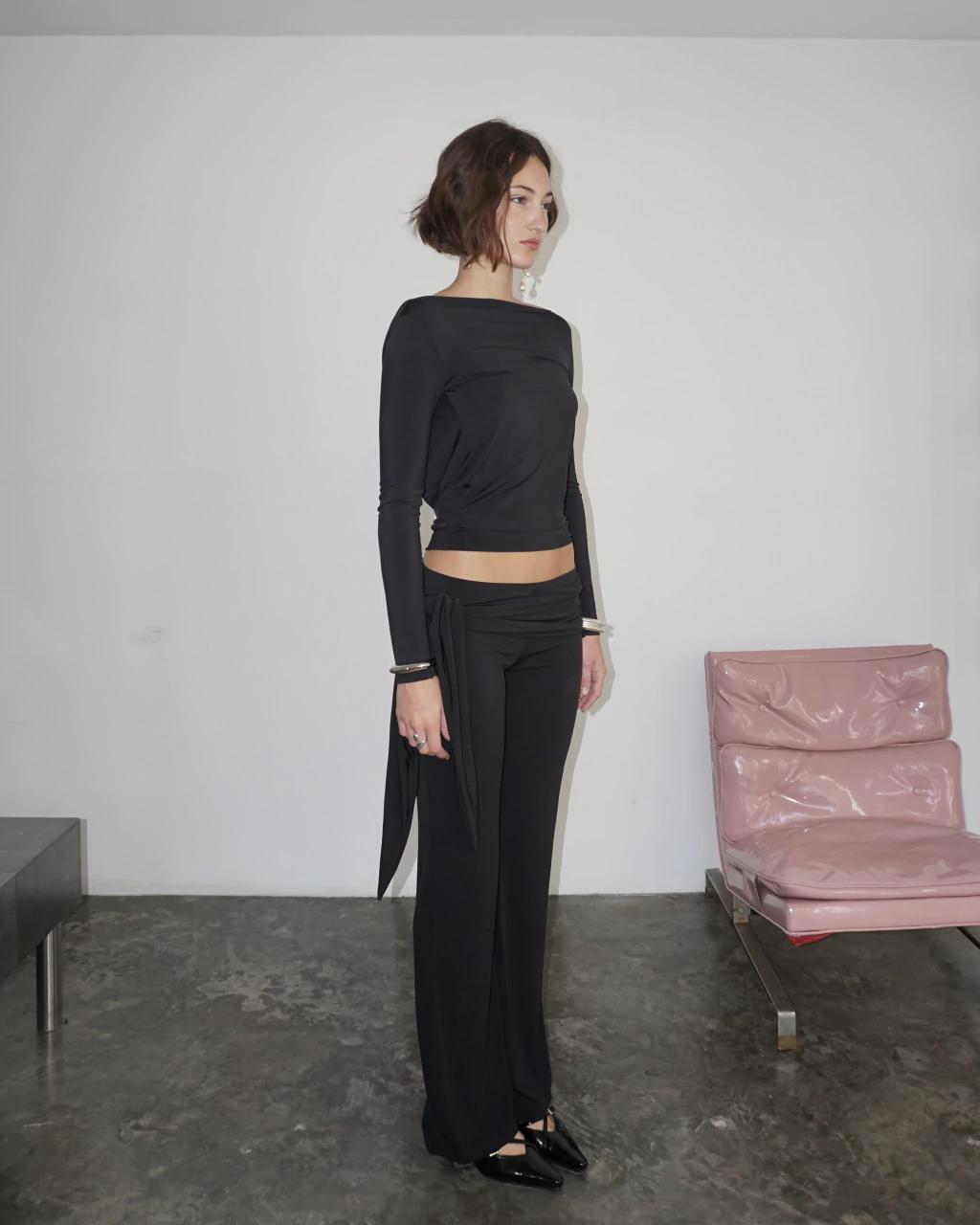pantalón tiras largas, nudos y secretos