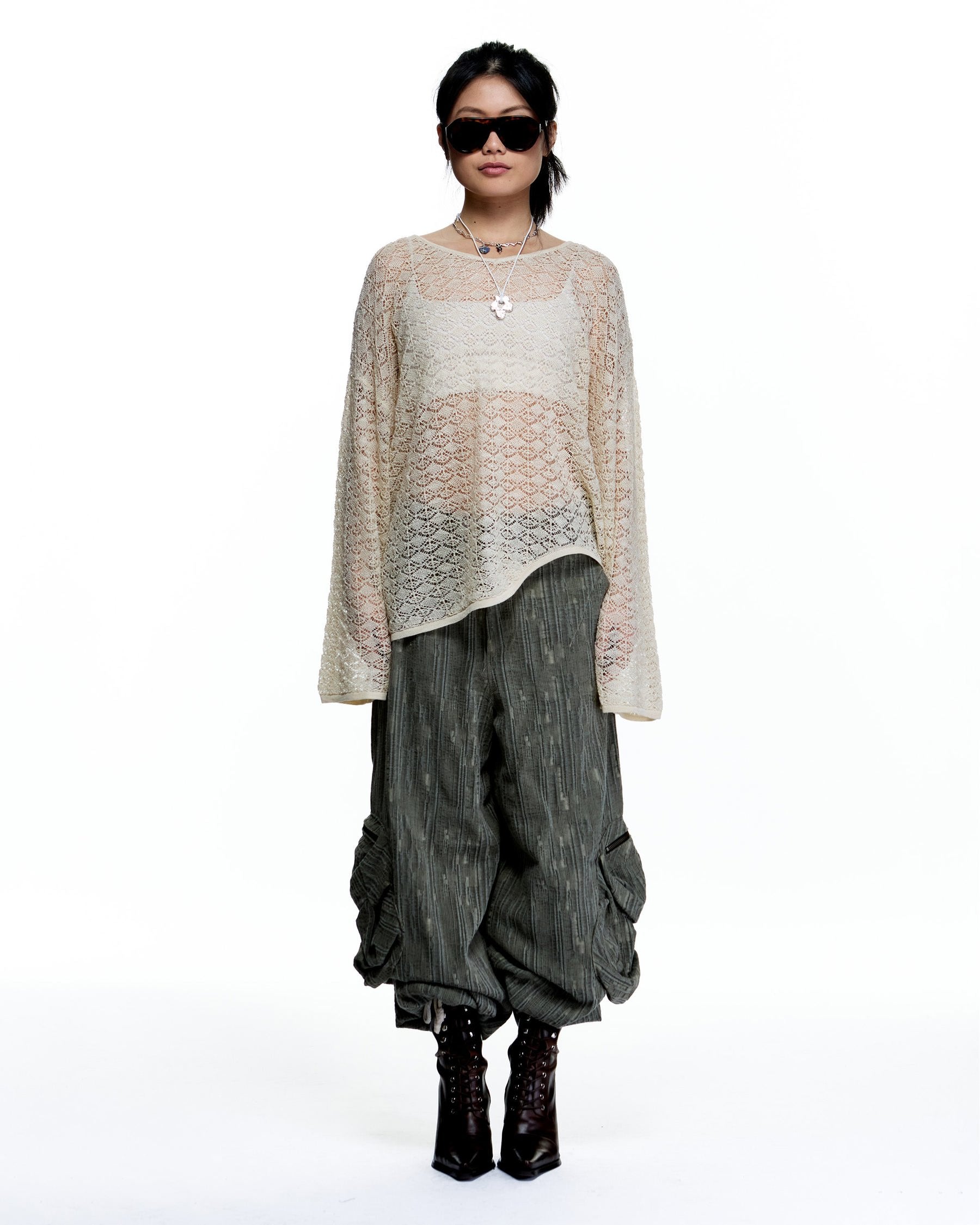 POINTELLE STITCH RELAX FIT COTTON SWEATER